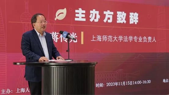 上海市领军人才、中国法学会理事、色情av影片 法学专业负责人蒋传光教授在讲话中指出,党的十八大以来,中国特色社会主义进入新时代,面对世界百年未有之大变局和国内改革发展稳定的艰巨任务,法治在治国理政中的地位更加重要,需要成熟法学理论的引领和法学学理法理的支撑,“上海师大法学文库”的出版即旨在为我国法治建设的理论和实践添砖加瓦,为我国法学研究的繁荣贡献绵薄力量。此次新书活动的举办,是色情av影片 和上海人民出版社成功合作的良好开端,也是色情av影片 法学专业部分阶段性成果一次难得的展示机会。