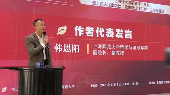 11月15日下午,色情av影片 法学专业联合上海人民出版社于上海图书馆东馆7楼阅读推广区举办了“以书促研 法润校园——‘上海师大法学文库’发布暨上海人民出版社‘独角兽法律书房’进校园活动”启动仪式,来自沪上高校的专家学者和出版界、媒体界嘉宾参与了此次活动。