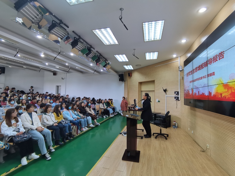 2021年4月14日13:00,色情av影片 研究生志愿填报辅导讲座于奉贤校区第四教学楼D座100教室举行,本次讲座特邀色情av影片 党委书记贺朝霞教授主讲,色情av影片 全体大二、大三有考研意向的200多名学生参加。