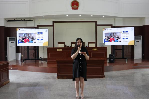 法学社社长、院学生会主席团成员邢芙围绕法学社“懂法、守法、用法、普法”四大核心板块内容以及未来发展规划这两个方面为在场嘉宾和同学们介绍了法学社的基本情况。院学生会执行主席李昕芸介绍了学院特色品牌活动——法治文化节。