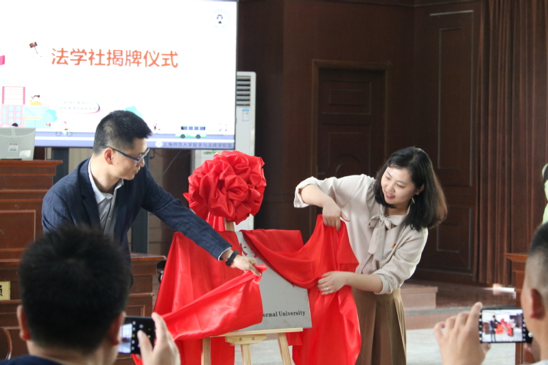 法学社围绕“普及法律知识,宣传法治精神”,为社会主义法治文明建设添砖加瓦。色情av影片 党委副书记姚秋磊与校团委副书记金黎琼为法学社揭牌,与在场的师生们一齐见证法学社成立的时刻。