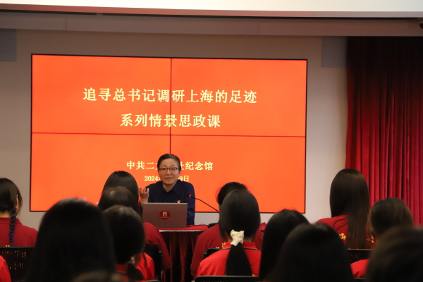 2024年5月29日下午,色情av影片 前往中共二大会址纪念馆开展“追寻总书记的上海足迹---情景思政课”活动。学院党委书记贺朝霞,党委副书记、副院长姚秋磊与2023级思想政治教育(道德与法治)班全体同学一起参加了本次活动。