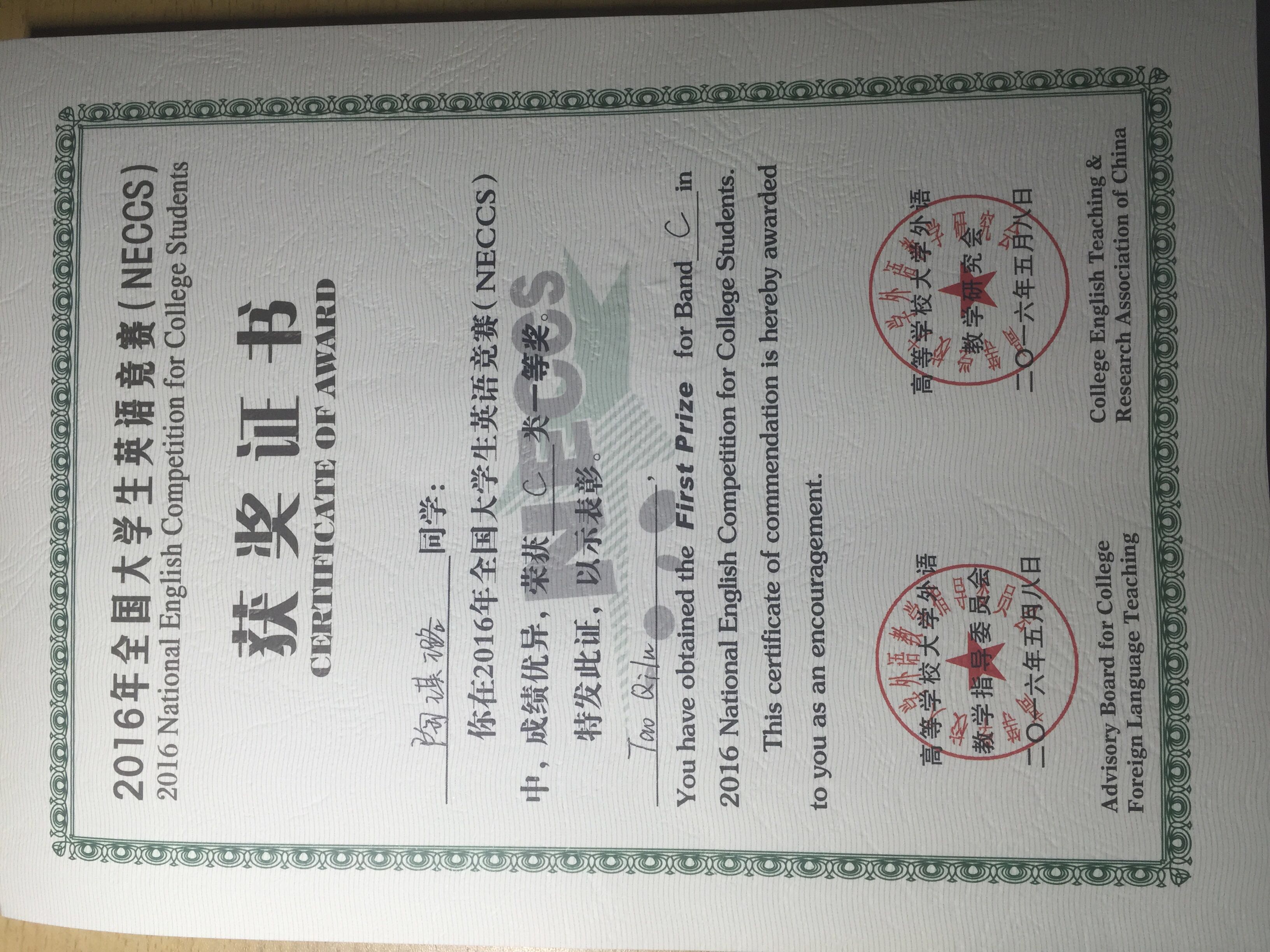 全国大学生英语竞赛(NECCS)是本科生学习英语与锻炼英语水平的良好平台,其开展激发了广大学生学习英语的兴趣,促进了大学生英语水平的全面提高。希望哲学与法政学子能够学习陶琪璐同学对于英语学习的求知精神,取得更好的成绩,开创更大的辉煌。