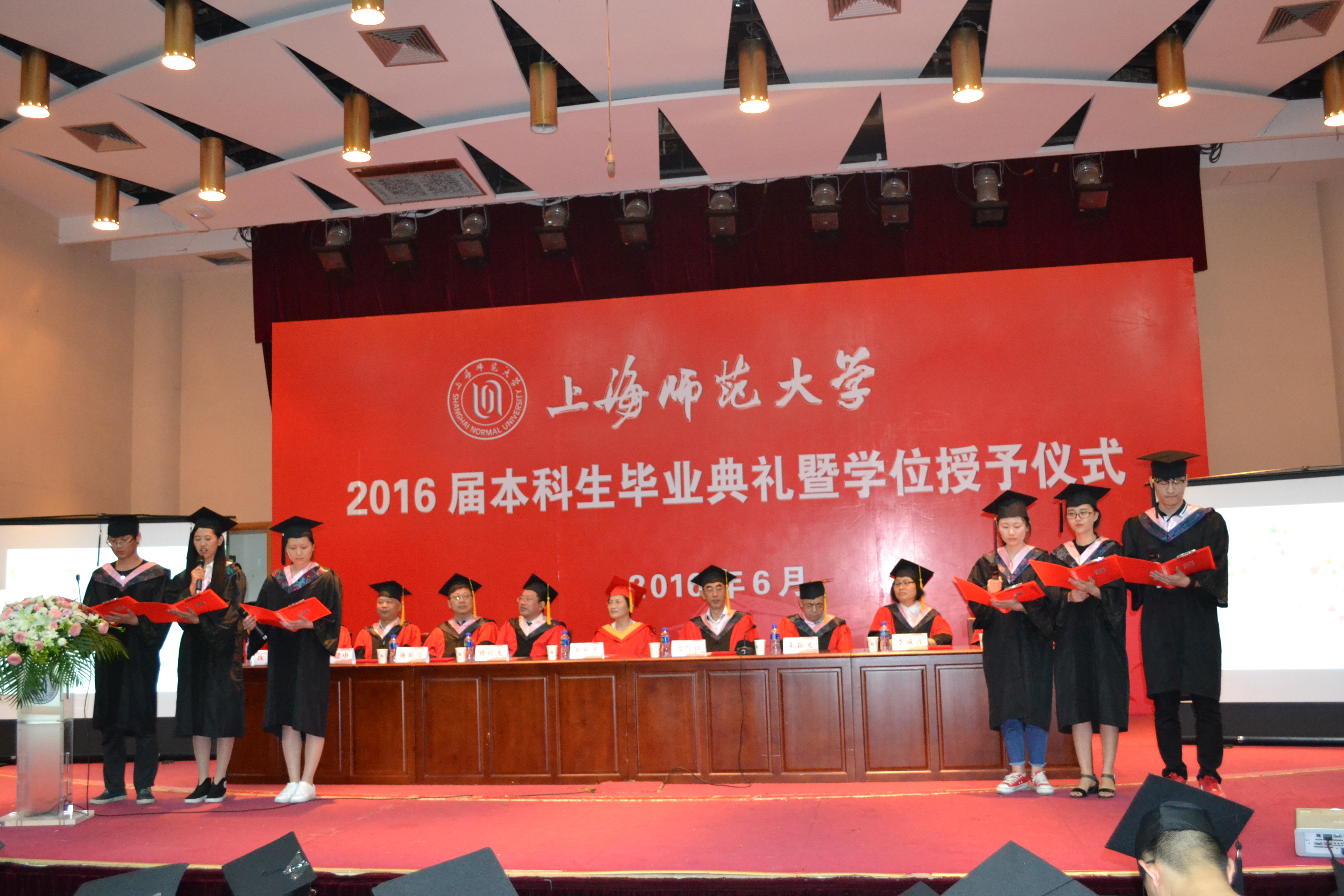 2016届本科生毕业典礼暨学位授予仪式在徐汇校区教苑楼多功能厅举行。校党委副书记、纪委书记秦莉萍、院领导、各系科主任和家长代表,及全体2016届毕业生参加典礼。典礼由院党委副书记、副院长陈燕主持。