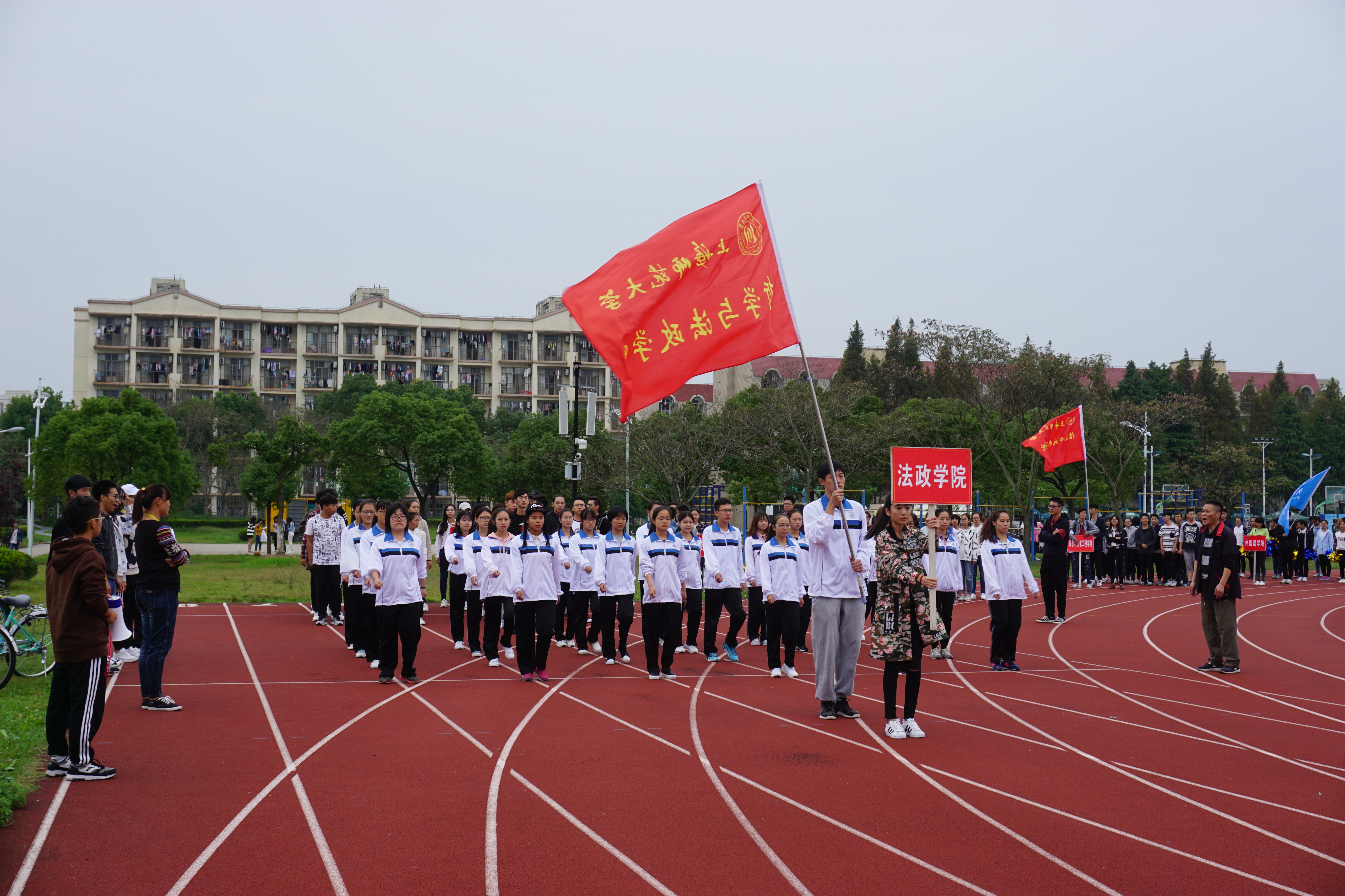 2016年10月12日15:30,校运动会开幕式彩排在奉贤校区南区大操场如期举行。本次彩排以学院为单位,共有17支院校代表队参加。