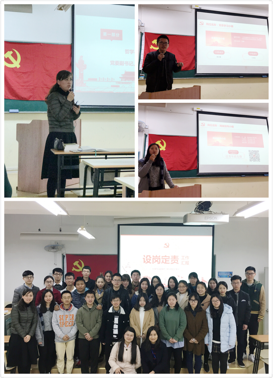 团委书记杨一祎老师,党支部全体成员。同时,支部邀请了学院低年级入党积极分子参加,并对支部党员“设岗定责”落实情况予以监督。会议在樊青青老师的简短介绍后并正式开始。
