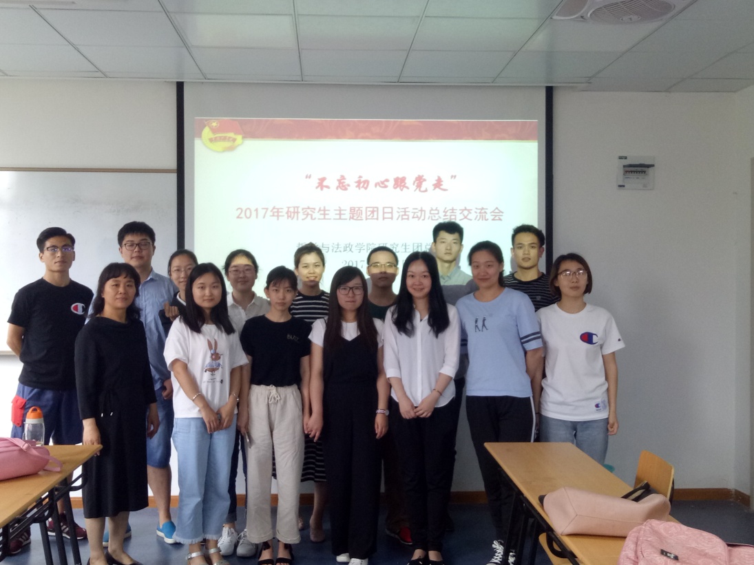 不忘初心,方得始终。研究生阶段不仅仅是进一步升华自己学业的阶段,作为学生团员积极地参加团日活动,也是增强团支部凝聚力提升自我的方式。通过开展主题团日活动,我院研究生团员不仅丰富了自己的课余文化生活,提升了自己各方面的素质,也更加坚定了共产主义远大理想和中国特色社会主义共同理想,增强了团员意识,强化了组织意识和组织纪律,在今后的学习生活中,也将更加积极践行社会主义核心价值观,做一名合格的共青团员。