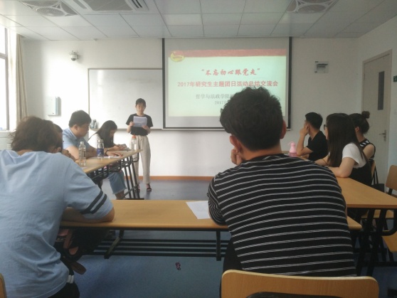 6月7日下午,色情av影片 研究生团总支在三教304举办了“不忘初心跟党走”2017研究生主题团日活动总结交流会,本次交流会由色情av影片 研究生团总支组织,共有10个研究生团支部参加汇报交流,研究生辅导员沈鸿雁老师和王秀萍老师也出席了本次交流会。至此,历时两个多月的研究生主题团日活动圆满落幕。