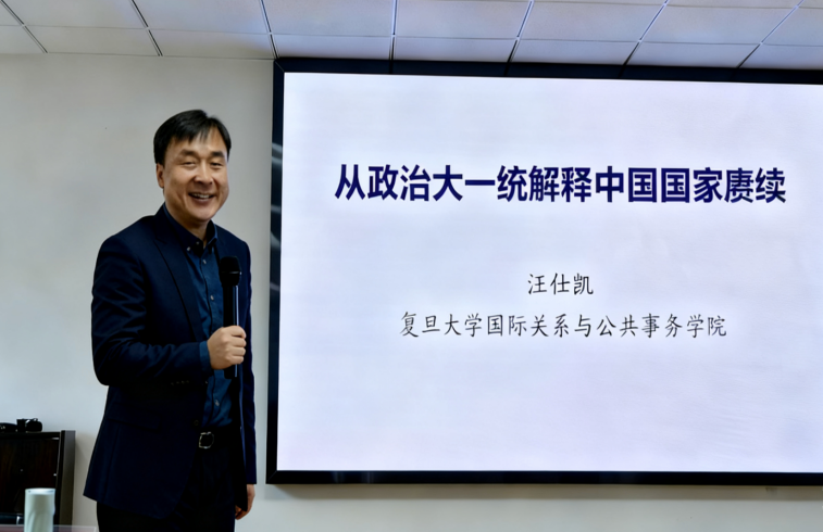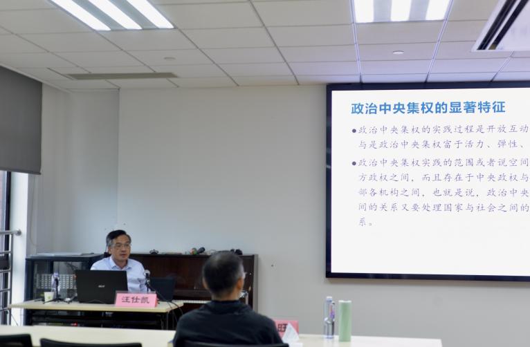 在专题报告环节,汪仕凯教授围绕“中国问题”的提出和“政治中央集权视角下的政治大一统和中国共产党的创造性转化”的具体分析两大部分展开。