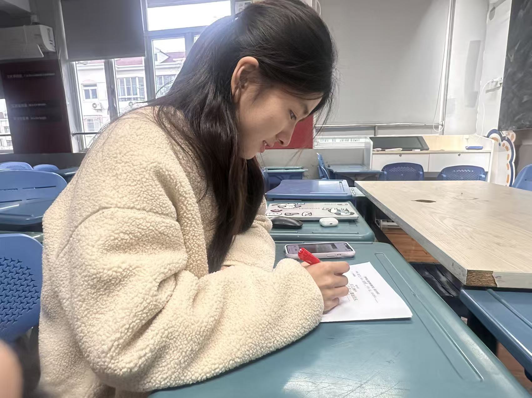 付江彤:这是我第一次真正走进中学参与教学工作,从批改试卷、参与监考到开展说课、交流研讨,每一项工作都让我对教师职业有了更直观深刻的认知。带教老师们不仅热心分享教学工作的细节与经验,更以认真负责的职业态度、耐心细致的指导方式,让我在收获专业技能的同时,也感受到了教育行业的温暖与力量。尤其是说课结束后的交流环节,老师们精准的分析、切实可行的建议,让我拓宽了备课思路,也清醒地认识到自己在专业素养、课堂掌控能力上的不足。五天的时光虽短,却坚定了我从事教育工作的信念,也让我明确了今后需要努力提升的方向。