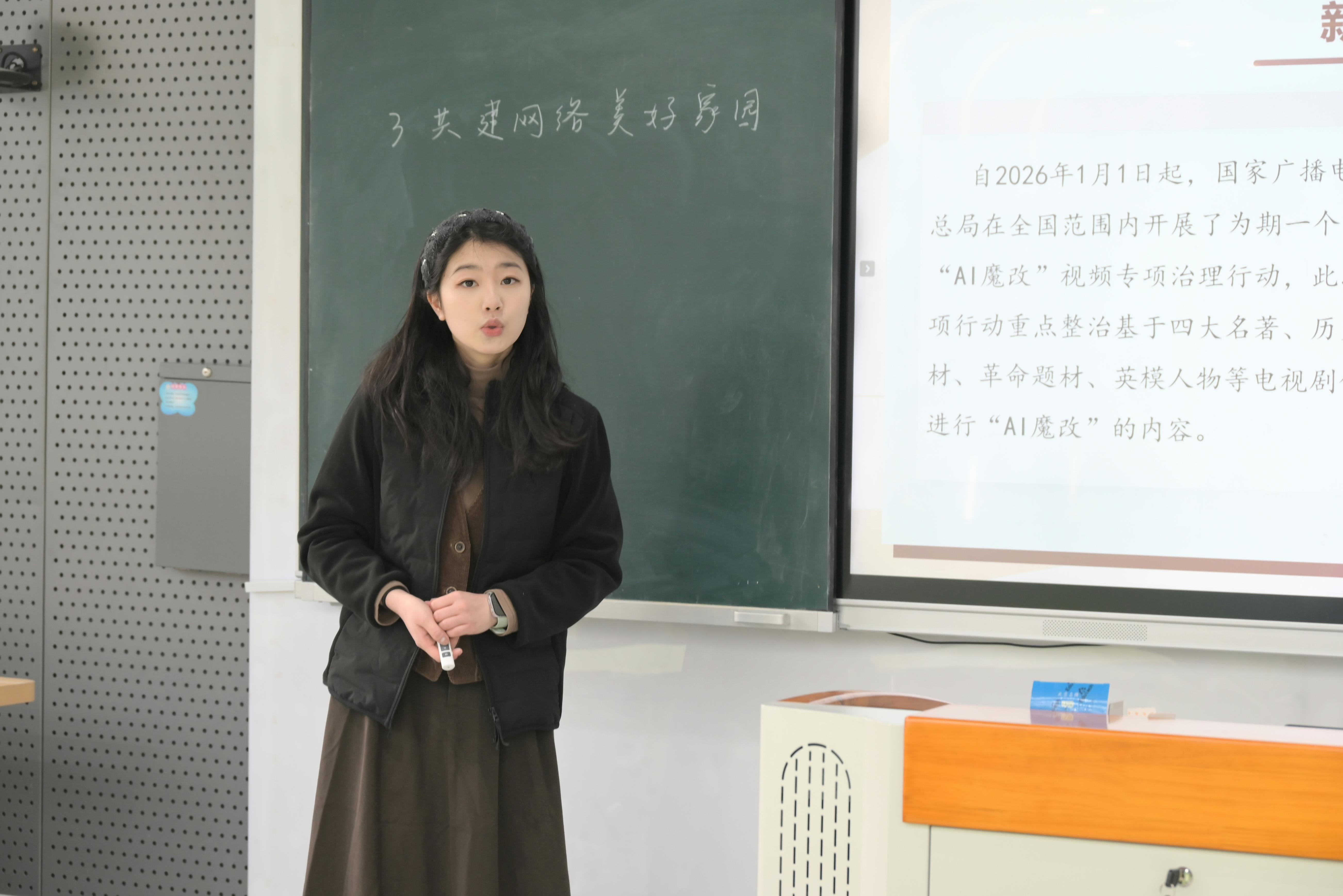 赵桐峣:一周的见习全面打破了我对教学工作的浅层认知。从前总认为站在讲台上授课是自然而然的事情,直至接触到优秀的一线教师,我才明白每一堂精彩课堂的背后,都是无数次打磨教案、吃透教材的辛勤耕耘。带教老师教会我,上好一堂思政课,既要精准把握知识点,更要贴合学生认知设计教学环节,让理论知识落地见效。我也深刻认识到万事开头难,撰写教案、站上讲台或许会存在诸多不足,但只要勇敢迈出第一步,在不断修改完善中锤炼能力,就能够逐步成长为合格的教育工作者。这份感悟也让我对教师行业有了全新的敬畏之情。