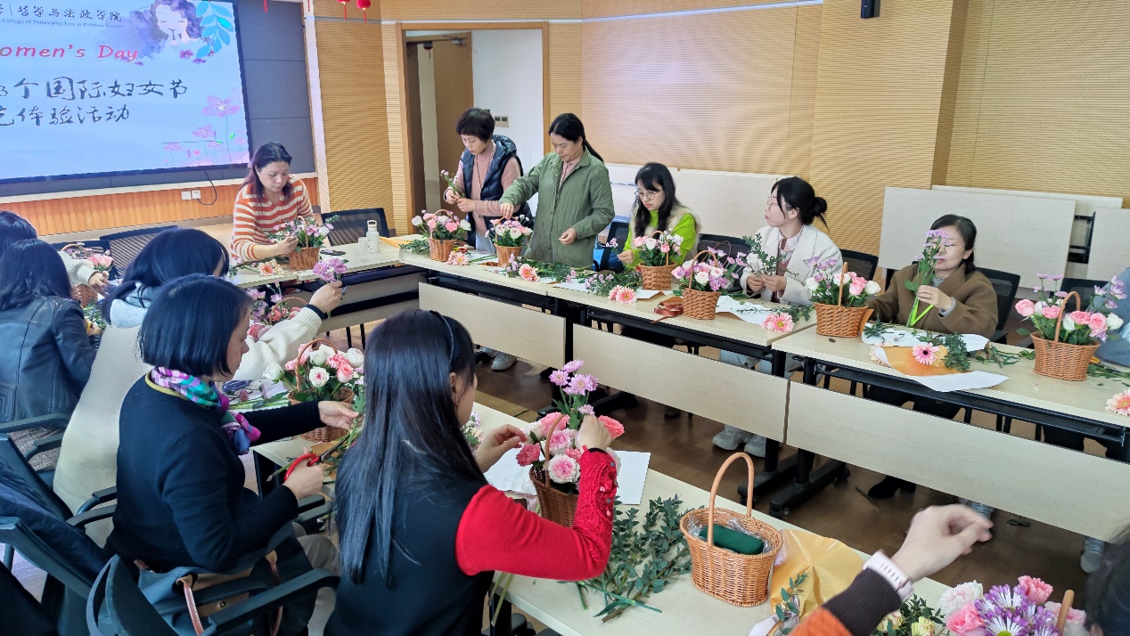 为庆祝第113个国际妇女节,丰富广大教职工精神生活与艺术情操,我院工会于2023年3月1日举办了插花体验活动。此次活动邀请了专业插花师作为指导,全院共30名男女教职工老师们参与了体验活动。