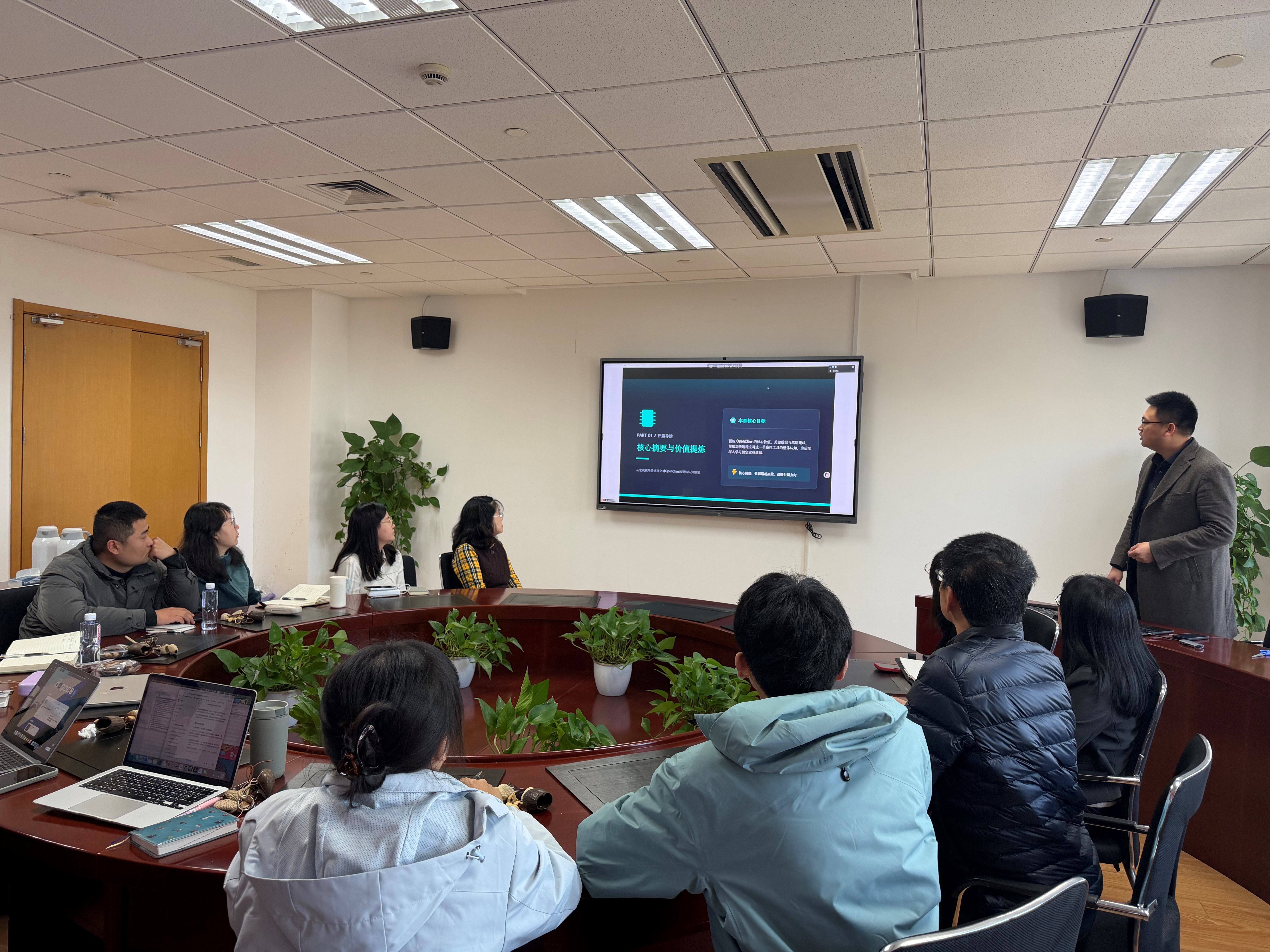于文科实验楼808会议室举办系列辅导员“思享会”之“OpenClaw入门指南:当AI长出了手脚”,特邀上海沃富网络科技有限公司总经理王文涛现场讲座。本次活动由学院党委副书记、副院长姚秋磊主持,学院党委书记高亭及学院领导班子共同出席,学院全体辅导员参会学习。