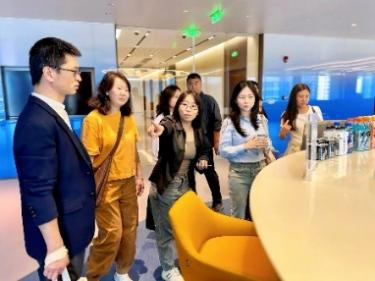活动初始,上师大2003级法律系校友、中智公司招聘运营中心高级项目经理张晟旻带领学工团队参观了中智的办公区域和工会活动场地。辅导员们均表示:亲身体验企业的真实工作场景,有助于他们在后续的职业生涯规划课程和日常指导中,更生动形象地向学生描绘职场,帮助学生提前做好心理建设,更好地适应从校园到职场的转变。