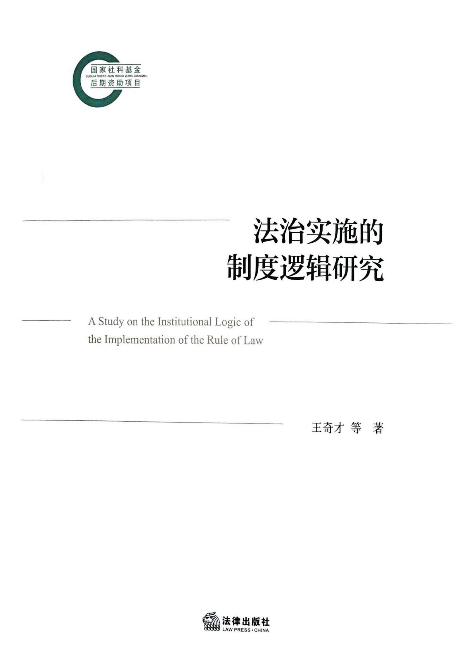 我院王奇才副教授学术专著《法治实施的制度逻辑研究》由法律出版社出版。