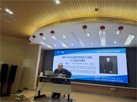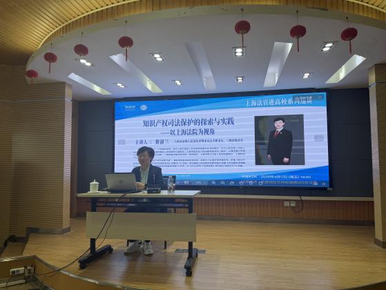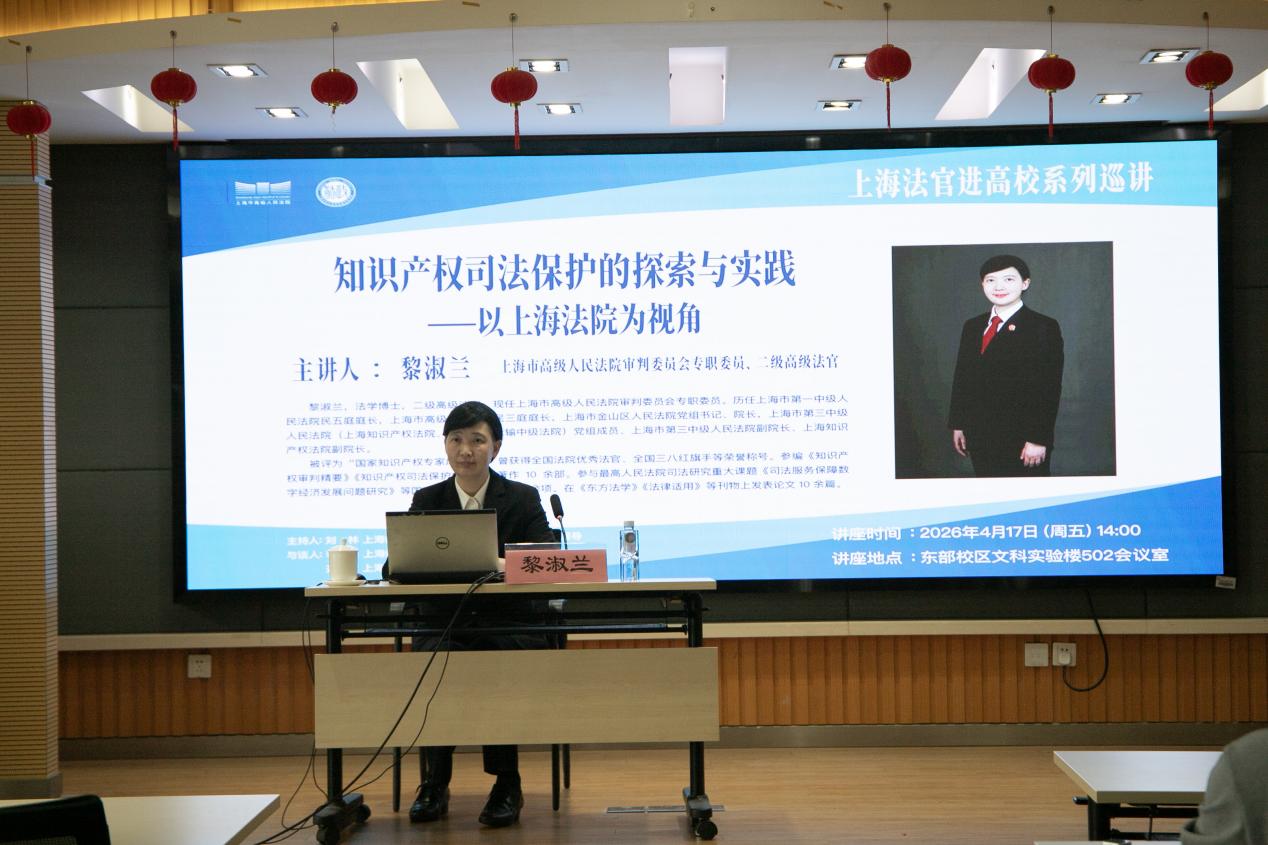 2026年4月17日,“上海法官进高校系列巡讲”第一讲“知识产权司法保护的探索与实践——以上海法院为视角”主题讲座在色情av影片 成功举办。讲座开始之前,色情av影片 党委副书记、副校长赵扬,色情av影片 院长刘林,法律系主任李峰,与上海市高级人民法院审判委员会专职委员黎淑兰一行就双方开展院校合作进行交流。
